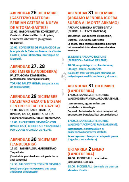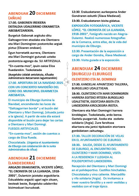 Eguberri hauetan adin guztientzako egitarau bikaina prestatu dugu. Parte hartzera eta udalerriko bizitzaren parte aktibo izaten jarraitzera animatzen zaituztegu.