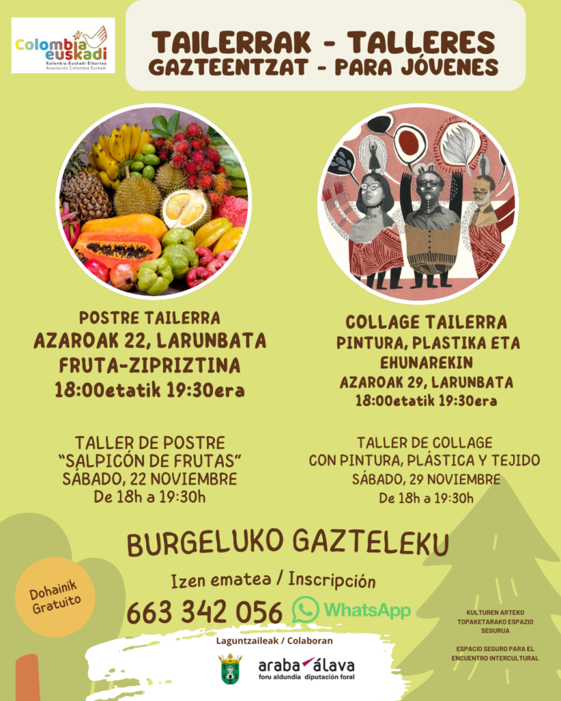 Kolonbia Euskadik udalerriko gazteentzako bi tailer dibertigarri dakarzkigu.