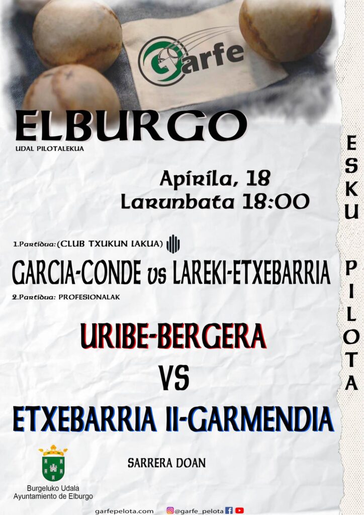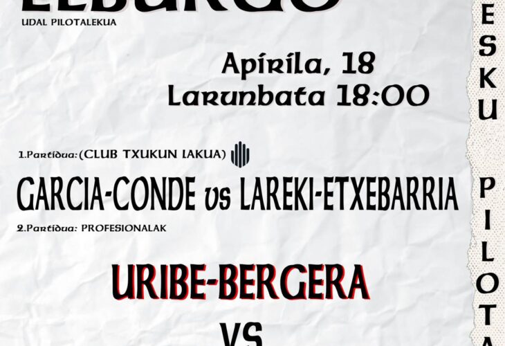 Disfruta de una tarde de deporte y tradición en el Frontón Municipal de Elburgo. Este sábado 18 de abril, a partir de las 18:00h.